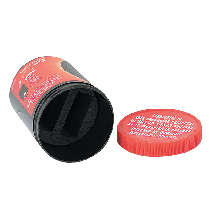 Speciální krabička homologovaná vládními agenturami USA (T.S.A.) pro bezpečnou leteckou přepravu Zippo zapalovačů v zavazadlovém prostoru letadla (checked baggage).