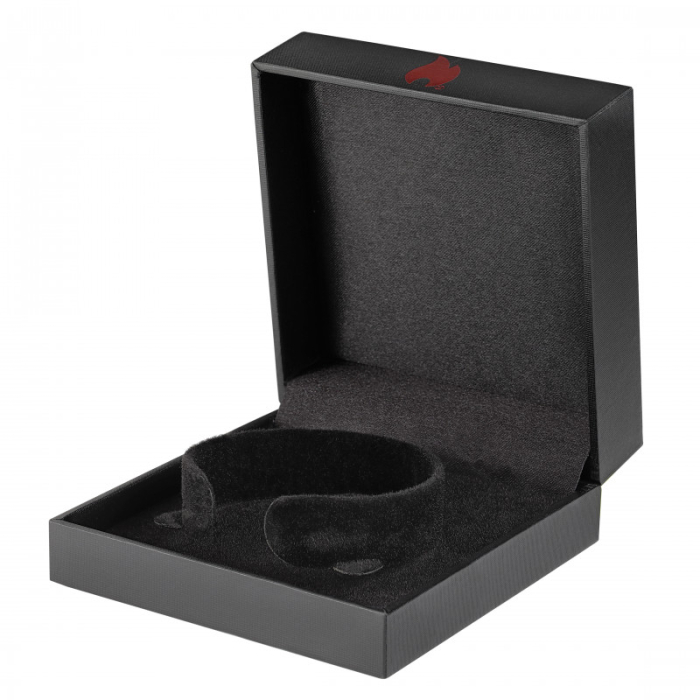 Proplétaný náramek z pravé kůže s magnetickou sponou z nerez oceli. Středová část náramku je vyrobena z černé a stříbrné nerez oceli. Magnetická spona zajistí bezpečné spojení. Vnitřní strana spony je zdobena klasickým logem Zippo, na vnější straně je vyobrazen plamínek Zippo. Dodáváno v originální dárkové krabičce.