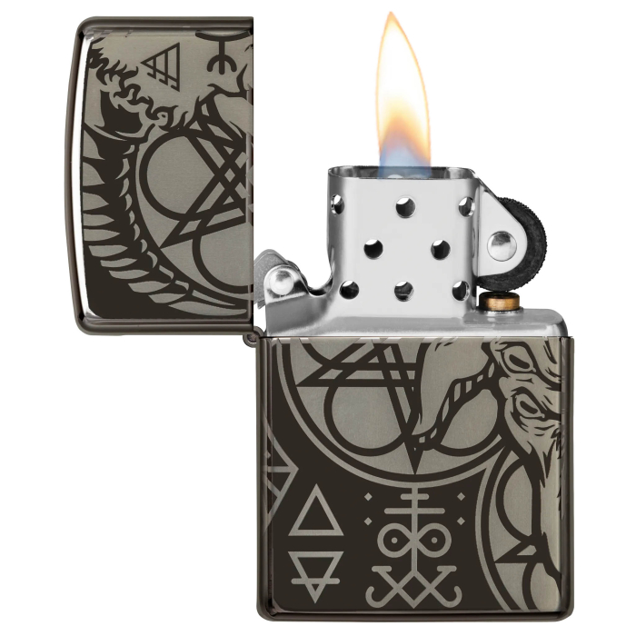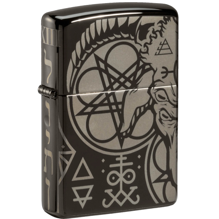 Pokochejte se tímto eklektickým uměleckým dílem inspirovaným duchovnem, magickými technikami, mytologií a nadpozemskými zážitky. Tento okultní design obsahuje obskurní symboly a znaky, které obepínají celý povrch tohoto Zippo zapalovače v úpravě High Polish Black a to pomocí unikátní technologie tisku do kovu 360° Photo Image. Pořiďte si tento zlověstný design do své sbírky ještě dnes. Dodáváno v dárkové krabičce.